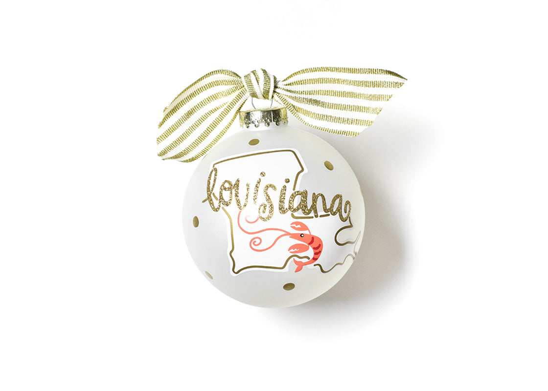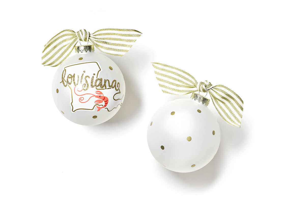 The ornament is presented with a neutral background with a gold outline for the state name of Louisiana and a friendly crawfish design to pop. You will love celebrating memories made in Louisiana and moments yet to come with celebratory décor that shows your affection for the South.