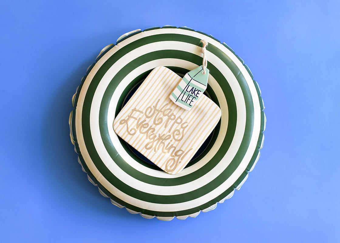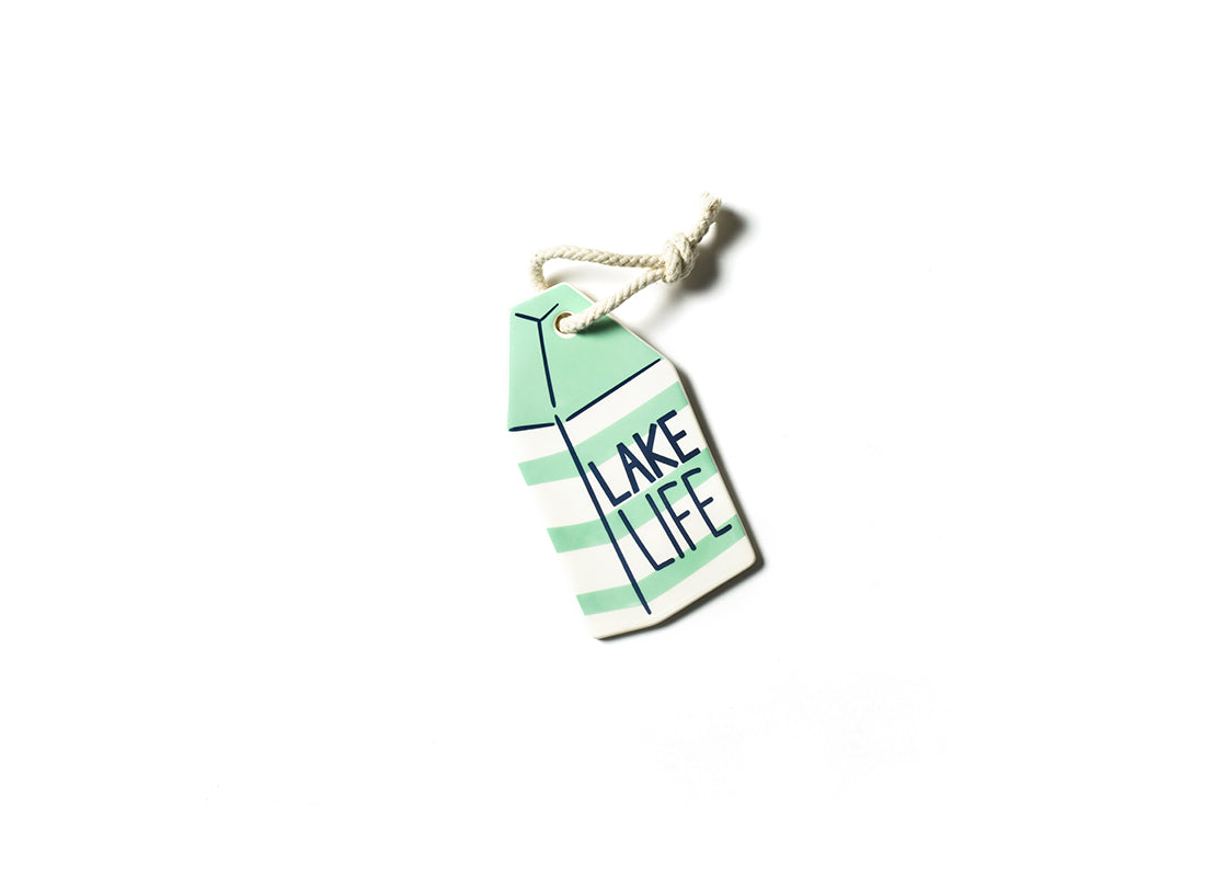 Our shaped Lakelife Mini Attachment features the iconic image of a buoy with mint green and white stripes and fun real rope detail. Refresh your summer style with a spring design that complements any home décor, making a gift for a friend who finds their happy at the lake.