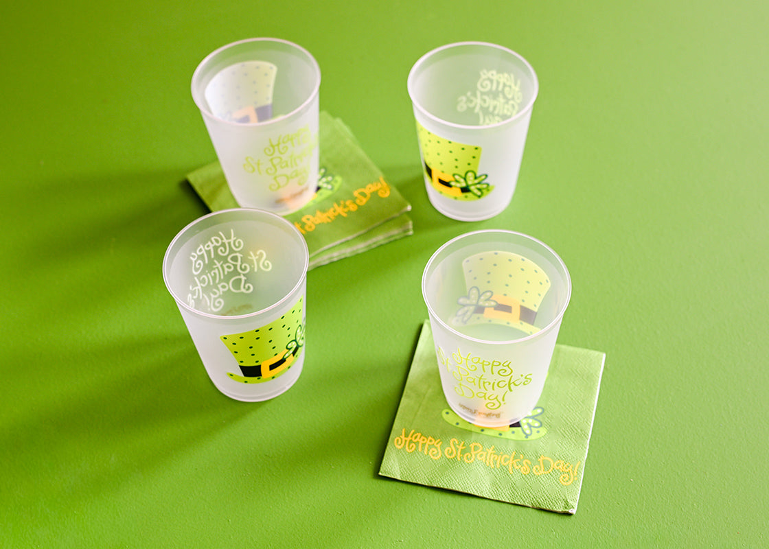 This 20-piece set of bright green napkins features a polka-dotted leprechaun top hat in each corner, complete with a matching shamrock and “Happy St. Patrick’s Day” greeting. Designed to make entertaining simple, these paper napkins are a perfect gift for a happy host.
