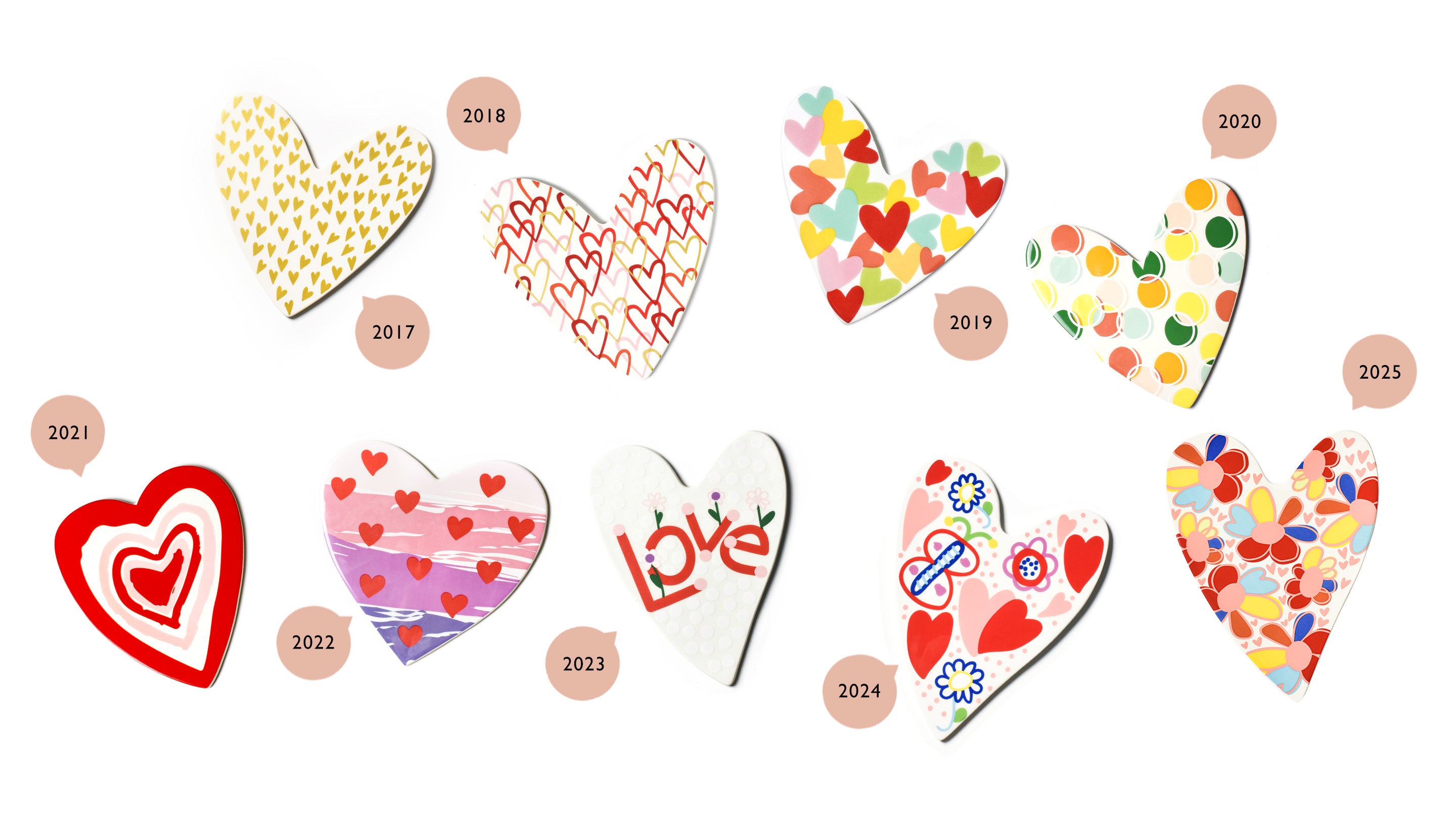 That multi-colored striped heart was the inspiration behind our very first Limited Edition Art with Heart Attachment. Since then, we've designed almost a new style every year, and we have started using artwork from St. Jude Children's Research Hospital from patients and their siblings as our main inspiration of eaach design.